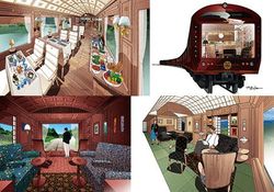 12年5月に発表された豪華寝台列車。全国的には廃止が相次ぐ寝台車にあえて新規参入し、日本のオリエンタルエクスプレスを走らせることで、九州全土の知名度アップを目指す。3泊4日1人38万円と強気な価格設定ながら、アジアの富裕層を視野に入れた販売戦略を採り、早くも反応は好調だという。 (ドーンデザイン研究所=パース画提供)
