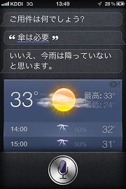 この機能が徐々に支持されてきている。その理由は、きめ細かなコミュニケーション能力にある。たとえば、「この週末の東京の天気は?」とSiriに聞くと、「週末の天気です」と言いながら東京の天気予報を画面に表示する。続いて「鎌倉はどう?」と話しかけると、Siriは少し前の天気の質問を覚えていて、すぐに鎌倉の天気を探し出す。先を読みながら情報を探すのだ。