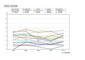 直近の3カ月で、首都圏に住む消費者がどの百貨店を利用したか、その利用率を2007年からグラフで表した。まずは「マル庶」層のグラフをざっくり見てみよう。