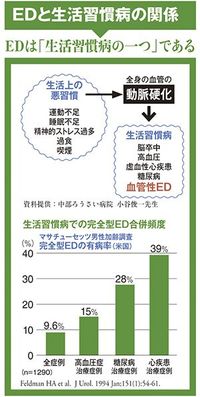 「確かに適度な運動や禁煙、バランスのとれた食生活などの実践は、EDの予防に貢献してくれるでしょう。まさに、生活習慣病全般に当てはまることです。ただし、いったん自覚症状が現れてしまうと、生活習慣の改善だけでは治療が困難になることも共通しています。できるだけ若いうちから健康的な生活習慣を励行すべきであることは、いうまでもないでしょう」