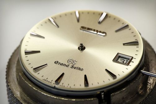「シンプルだからこそわずかなズレが目立ってしまう。GS=品質という共通認識でやっているので、針の長さや略字(インデックス)の幅、目盛りの印刷など、すべてコンマ1ミリの精度です。また略字は手作業で植字するのですが、脚を差し込む穴はわずか0.21ミリ。一度で植え込まないと文字盤に傷が付くので熟練技術が必要。GSの顔はシンプルですが細部には職人の技が詰まっているのです」