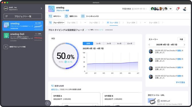 大きく分けて3つあり、「プロセス」「KPI管理」「ヒト・モノ・カネ資源の最適化」です。「dotHatch」では、成功確率を上げるために、この3つの新規事業の状況を可視化しています。新規事業を創り上げる上で仮説の誤りを見つけた場合や、想定通りに進行しない、投資対効果に見合わないなどのケースが発生した場合には、事業のピボット(方向転換)と撤退のタイミングもサポートし、失敗の確率を減らしています。