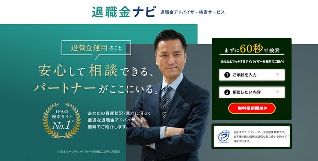 退職金を運用し、生涯にわたって長くサポートしてくれるIFA。自分の投資傾向や性格に合うIFAを見つけ出すには、アドバイザーナビ社が運営する退職金アドバイザー検索サービス「退職金ナビ」が便利だ。