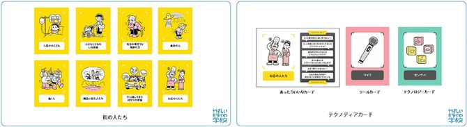 ワークショップでは、「テクノディアカード」が用いられた。これは、子どもたちにSTEAM教育の概念を分かりやすく感じてもらうために株式会社CANVASが独自開発したツールだ。カードは黄色の「あったらいいなカード」、緑色の「テクノロジーカード」、桃色の「ツールカード」の3種類がある。
