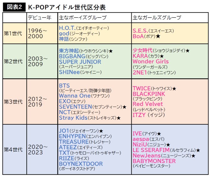 海外展開に長けた韓国の芸能事務所が日本でメンバーを募って結成したグループを韓国に逆輸入する、というのも第4世代の巧みな戦略だ。ガールズグループのNiziU(ニジュー)は9人チームだが8人が日本人(残る1人のニナはアメリカ国籍)。2020年にデビューして以来、日本での活動は今回で4年連続紅白に出場するほど順調だが、韓国でのデビューはコロナ禍の影響もあって実現できず、「なんちゃってK-POPグループなのでは」とも言われてきた。