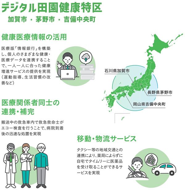 【宮元】デジタル田園健康特区は国家戦略特区の一つで、デジタル技術を活用して健康・医療に関する地域課題の解決に取り組む自治体を指定し、その地域のデジタル化や規制改革を推進するものです。