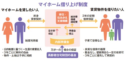 同制度は、一般社団法人「移住・住みかえ支援機構(JTI)」が運用しているもの。50歳以上のシニアが所有する住宅を長期(最長で終身)にわたって借り上げて転貸し、安定した賃料収入を保証するというものだ。