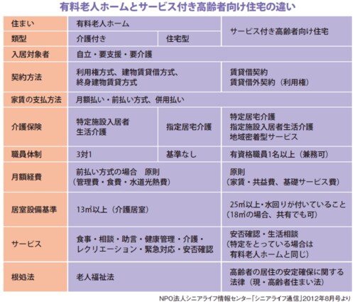 ただし、実際には住まいのタイプや事業者、個々の施設により内容にはかなり差異があるので、不安ならば専門の相談機関に相談することをお勧めする。
