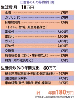 田舎暮らしの1カ月の消費支出は、節約して10万円から15万円が目安だと柳さん。ただし、田舎に引っ越せば生活費がその額で済むのではなく、消費型生活から意識を切り替えることが大切だという。