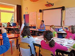 高学年からは「セルフ・インタープリティング」(自己通訳)で、英語力とオランダ語力の両方に磨きをかける子も多い。まず、短い英語の文を話したら、すぐに母語に訳して話す方法。例えば“Today, I go skating.”と英語で言ったら、“Vandaag ga ik schaatsen”(ファンダーグ ハー イック スハーツェン)と、オランダ語に「逐次通訳」するのだ。