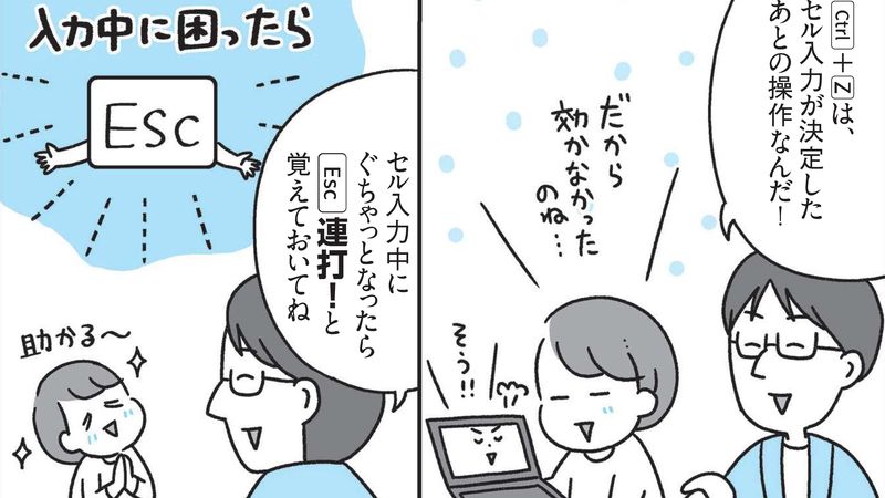 エクセルで数式をいじってしまい、ぐちゃぐちゃになってしまい、Ctrl+Z(元に戻す)もきかない……数式を打ち直した……という経験がある方も多いだろう。たとえば、こういうときは、Escを連打すると元に戻せる。このように、イライラ場面に遭遇しても、サクッと解決できるワザが、エクセルにはたくさんあるのだ。