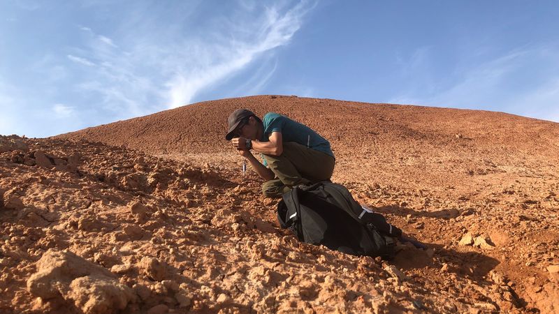 アメリカ・モンタナ州のバッドランドを歩いていると、卵殻化石はもちろんのこと、あたり一帯にコロコロした繭のような小さな岩が密集した地点があった。こういうコロコロした岩は踏むと滑って転びそうだからやっかいだ。実は、このコロコロした岩は全てウンコ化石なのだという。ウンコ化石と思われる岩は、地表を覆っている。おびただしい数だ。