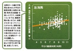 グラフにもあるとおり、10時間ぐらいまでは「睡眠時間の長さに比例して海馬の体積が大きくなる」という関係が成り立っている。そして、睡眠時間が1日5~6時間ぐらいの子供よりも、9~10時間ぐらいの子供のほうが海馬が1割程度大きかったという。