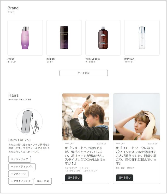 美容室から発行される専用のIDを使って登録を行うことで、いつでも欲しいタイミングで美容室専売の商品を購入できる「milbon:iD」。サイト運営や受注、商品発送業務などはミルボンが行うため、美容室には物流業務の手間が掛からない。ヘアケアに関するQ&Aなど、顧客に役立つ情報も掲載されている。