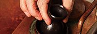 4 お酒はビール(大瓶680円)と、日本酒のキンシ正宗・銀閣(1合530円)のみ。熱燗は鍋の横の燗銅壺で温めてくれる。