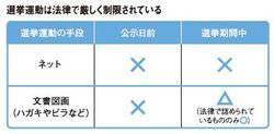 選挙運動は法律で厳しく制限されている