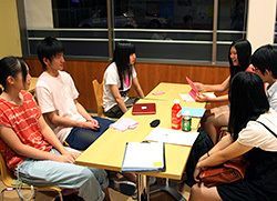 「医療は、ただ言ってみて、格好いいなと思って、ちょっと思っただけ(笑)。栄養士の方は、学校の授業で進路を探すための職業調べみたいなのをするんですけど、そのとき適性チェックとかしているうちに進んでいったら栄養士っていうページが出てきて、それを読んでいたら『なってみたいな』って思って。教師の方は、お母さんが大船渡で小学校の先生やってて、話とか毎日聞いてて。あと、中学校の時の職業体験で小学校に行っって、体験授業みたいなのもをちょっとだけやらせてもらって、楽しいなって思って。今のところ、教職を一番に考えています。あと、国際関係のきっかけは、アメリカの研修(注・「TOMODACHIサマー2012 ソフトバンク・リーダーシップ・プログラム」のこと)です。(じっさいにどこで働くかは)進学先に左右されそう。『この職業になりたい』っていうガッツリしたのが全然ないから、大学でもいろんな新しい体験して、また左右されるかな……。アメリカでもすごくグイッて曲げられたし。曲げられたっていうか、変えられたっていうか」