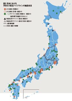 図2 日本における天然ガス高圧パイプラインの施設状況