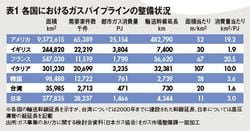 表1は、各国のガスパイプラインの整備状況を比較したものである。この表の「面積当たり」の項をみれば明らかなように、わが国のパイプライン密度は、他国と比べて著しく低い。