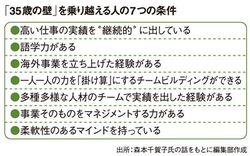 35歳以上になると、チーム全体をマネジメントするスキルも不可欠です。企業が求めるのは、メンバーのモチベーションを高めながら、1人1人の力を足し算ではなく「掛け算」にしていくチームビルディング力。その点では、比較的能力やモチベーションが高い人が集まる大企業におけるマネジメントの実績よりも、多種多様な社員がいて、能力やモチベーションもばらばらのチームで実績を出した人のほうが、転職市場では評価される傾向にあります。