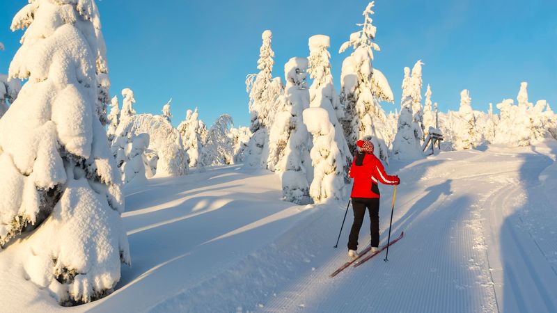 クロスカントリースキーをするフィンランドの女性