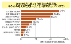 ここで、最も近い関係である「家族」にいま一度、目を向けたい。先ほどの国民意識調査で、「東日本大震災後の考え方の変化」について聞いたところ、1位「防災意識の高まり」(52.0%)、2位「節電意識の高まり」(43.8%)に続いて、3位には「家族の絆の大切さ」(39.9%)との回答が寄せられている。