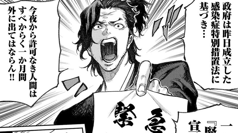 「『緊急事態』を宣言するきに!」「今夜より許可なき人間はすべからず1カ月外に出てはならん‼️」
