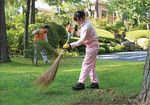 伊那食品の始業は午前8時20分。朝礼もその時間に始まる。しかし、社員たちは始業の少なくとも30分前には集まり、3万坪の敷地全体を清掃している。朝礼の前に掃除をする会社はいくつもあるが、それは本社近くの道路を掃いたり、ごみを集めたりする程度だ。それに比べると、伊那食品の場合は過酷というか本格的な環境整備である。ほうきやちりとりといった装備では心もとないから、ガソリンエンジンで動く草刈り機、電動式の落ち葉集め機、小型のブルドーザーに似た「スイーパー」といった造園会社が使うような機器が登場する。