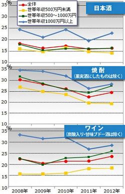 2012年、他層が横ばいなのに比べて、マル金層の日本酒志向は回復してきているようだ。