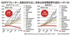GDPデフレーター、名目GDPともに、日本は20年間世界の逆をいっている!