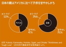 25年ぶりに日本に帰ってきてまず驚かされたのが、日本の親の「しつけ行動」であった。買い物をしているとき、「お子さんを走らせないでください」とアナウンスが流れた。アメリカではこのこと自体考えられないが、さらに驚かされたのは、親が走り回っている子供を注意しないことだった。アメリカなら、その場で厳しく叱りつけるのが当たり前である。