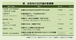 前回は、女性向け「年齢本」を貫く「自分らしさ」という原理について見てきました。今回は、このような「自分らしさ」を重視する態度が、仕事や恋愛、結婚などの具体的テーマに適用されるとどうなるのか、前回に引き続き20代論を対象に見ていきたいと思います。ただ、「年齢本」で扱われる内容は非常に多岐にわたるので、今回は仕事、外見、恋愛の3テーマに絞ることとします。