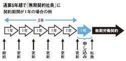 また改正労働契約法では、5年経過後に無期転換しないことを条件に契約を更新することも無効とされている。
