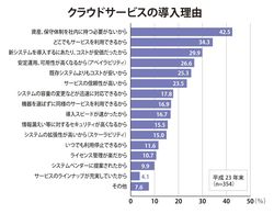 同じく最新の情報通信白書によれば、「資産、保守体制を社内に持つ必要がないから」「どこでもサービスを利用できるから」「新システムを導入するにあたり、コストが安価だったから」がベスト3。第5位にも「既存システムよりもコストが安いから」が上がった。やはり、コスト削減への期待は大きい。