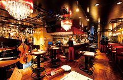 照明が落ち、ピアノの音が響く。開店から20分ほどでいっぱいになった35坪ほどの店内で、肩を寄せ合ってワインを飲む客たちが、ジャズバンドの生演奏に耳を傾ける。満席といっても椅子は33脚。あとの34席は立ち飲みだ。入り口には寒空のもと空席を待つ客たちが並んでいる。2月14日に銀座にオープンした「俺のイタリアンJAZZ」の店内は活気に満ちていた。