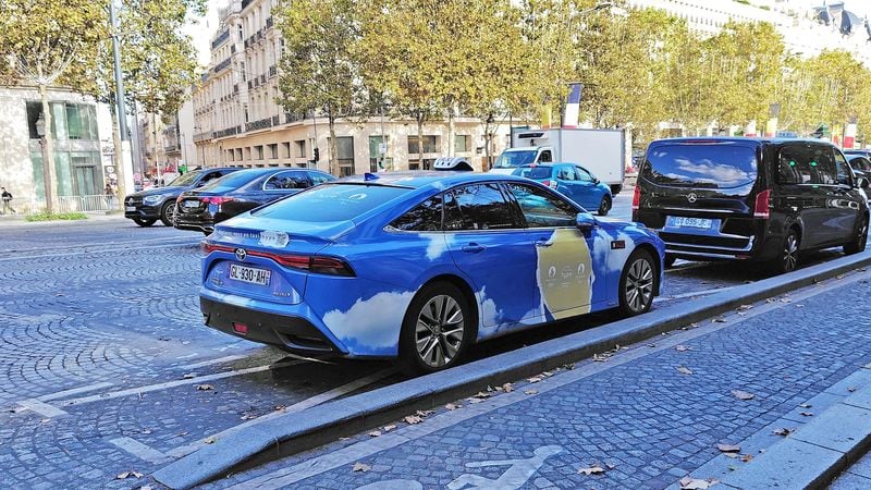 パリ市内を走るタクシーの多くがトヨタのハイブリッド車