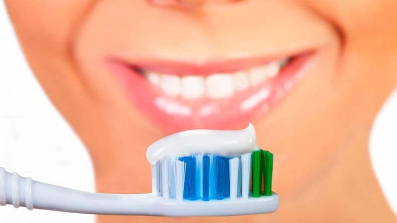 ①フッ素入りの歯磨き粉を歯ブラシに「2センチ」ほど盛りつける。