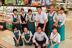 「自分の人間性をどんどん出すようにしている」と馬場ストアマネージャー(後列中央)。犬塚さん(左隣)は「裏表がないから、私たちも話しやすいんです」という。
