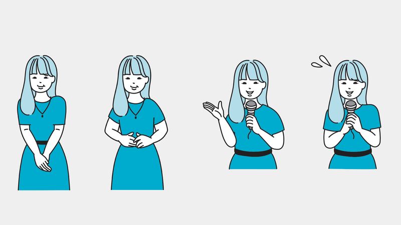 ぎこちなく、まったくジェスチャーがない棒立ち状態では、見ている側がいたたまれなくなってしまいます。