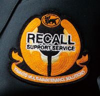 リコールに対応する「緑のブレザー部隊」の胸に刻まれた「リコールサポートサービス」のエンブレム。