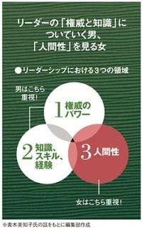 「1つは権威のパワー、2つ目が知識やスキル、経験といった実務能力。3つ目は人間性です。男性は1と2の力で引っ張りやすいですが、女性が重視するのは第3の領域。たとえば『部長が言ったから』という理由で強制すると女性にはそっぽを向かれがちです」