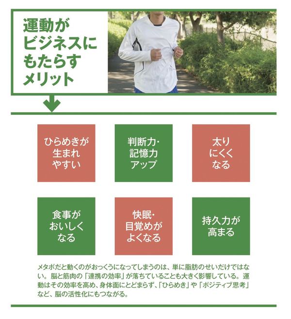 運動にはさらなる利点もある。「運動は、脳を鍛え、判断力を冴えさせる効果ももたらしてくれます。朝のウオーキングは、ビジネスパーソンにうってつけなのです」と大和田先生。