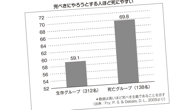 その結果、6年半後に生存していた人と、死亡した人には完ぺき主義テストの得点に大きな差があったのです。