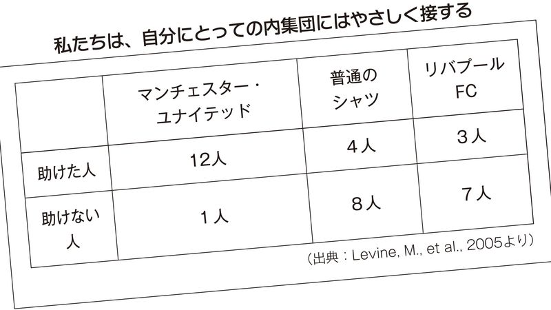 たとえば、日本人にとっては日本人が内集団になりますし、外国人は外集団ということになります。また、同じ世代の人が内集団、違う世代は外集団という分け方もできるでしょう。