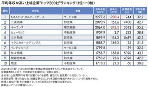 調査対象会社は、上場企業のうち単体の従業員数が10人以下の企業や、平均賃金の発表がない企業などを除いた3744社。その平均年収は652.2万円で前年より20.6万円増え、賃金水準の底上げが進んでいることが鮮明になった。ランキング500位までの従業員平均年収額は993.5万円で前年から3.5万円の微減となったが、1000万円を超える企業は154社と前年から14社増加した。ランキングの1位は2277.6万円の…続きはこちら