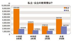 出典:「平成22年度子どもの学習費調査」(文部科学省)、「平成22年度学生生活調査」(独立行政法人日本学生支援機構)