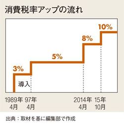 消費税増税のための「社会保障と税の一体改革法」が成立し、14年4月1日に8%、翌15年10月1日には、10%に消費税が引き上げられることになった。