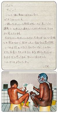 勇と一緒に、銭湯で背中を流し合いっこした思い出の写真(写真下)。勇からもらった手紙。あらためてこんな手紙をもらうとちょっと“ウルッ”とくるね。