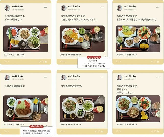 「晩酌の友達」とは毎日、「X」にアップする大崎さんの夕食のこと。毎晩、晩酌を欠かさないから必然、その「友」となる。