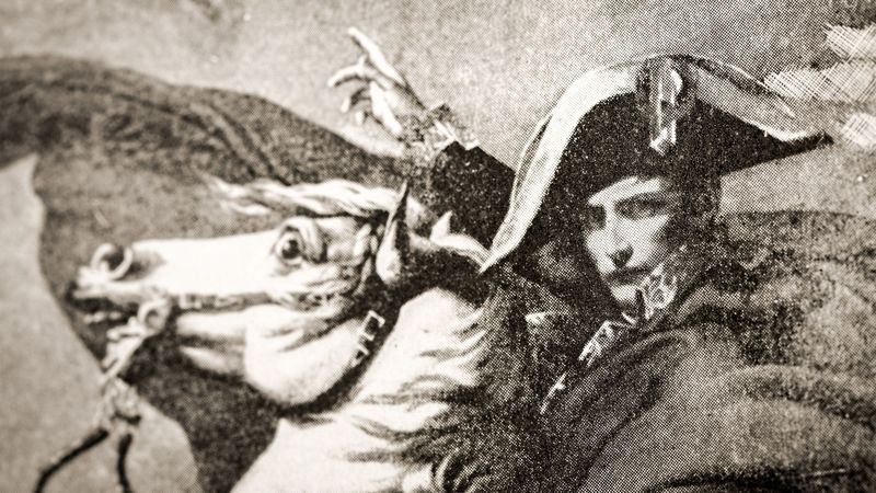 ダヴィドが1801年に制作した『サン・ベルナール峠を越えるボナパルト』では、ケープが舞うほどの強風の中、急峻な坂で馬を後脚で立たせる勇壮なナポレオンの姿が鮮烈に描き出されている。戦士の大胆さを強調したこの作品をナポレオンはとくに気に入ったようで、その後、同様の絵を何枚も注文し、一つはマルメゾン宮に、もう一つはアンヴァリッド(廃兵院)に飾っている。そのうえ、多くの複製版画が出回り、ゴブラン織のタピスリーでも描かれたので、当時から、多くの人々がこの作品を目にすることができた。